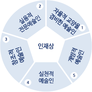 ① 올바른 가치관과 윤리의식을 바탕으로 민족과 인류 공영에 공헌하는 예술문화 리더의 소양을 가진 “자율적 교양을 겸비한 예술인”