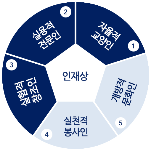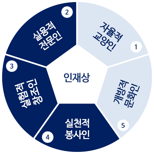 셋째, 사회와 예술의 영역, 지역과 국가의 경계를 뛰어넘는 21세기의 문화지형을 선도하며 지역사회와 국가발전에 기여하는 개방적 문화인재의 양성에 힘쓴다.